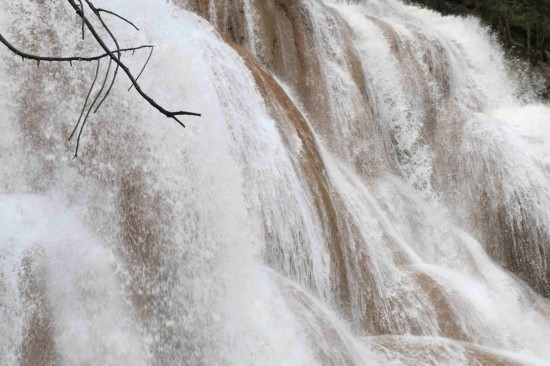 沿着步行道,穿行在原始树林中,可以一台一台近距离欣赏三台瀑布的风姿:最下是宽阔的瀑脚,中间是神秘的水帘洞,最上是流水潺潺的瀑顶。