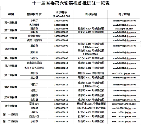 四川在线消息(记者 陈松)截至6月5日,按照十一届省委第六轮巡视工作部署,12个省委巡视组完成对8个市、6个县(区)和8个省直部门的首批进驻。