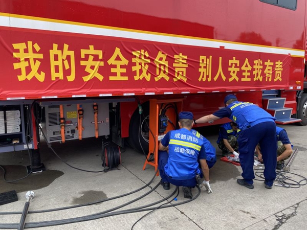 按照“保障跟着实情走、物资跟着队伍走”的原则,训保支队15车36人及11800件套保障物资遂行现场,10个支队的战勤保障的45车94人陆续抵达,帐篷、食品、被褥、雨衣、药品等保障物资一应俱全、精确到人,实现了餐饮生活保障到一线、通信网络畅通到一线、装备技术支持到一线、引入地方外援到一线、作战物资供应到一线、医疗防疫服务到一线。