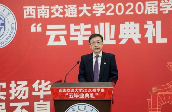 西南交大校长杨丹在云毕业典礼上以《后浪奔涌,未来可期》为题讲话,结合新冠疫情的时事背景,表达了对同学们的殷切期望。