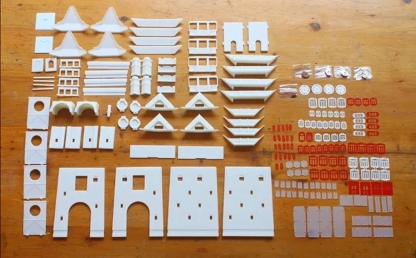 张弛通过各种渠道收集荣杜易的原始钟楼设计图,同时对1953年改建后的上部两层木结构塔顶进行激光测量和传统测量,再利用计算机和设计软件进行设计、修正、校对和样品制作,严格按照德国模型行业细节掌控标准进行模型复原。最终,在今年5月8日,趋于完美的第四版华西钟楼模型拼装完成。