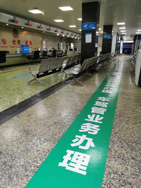 为全面助力复工复产,车管科在采取了一系列科学防控和业务简捷快办措施的基础上,再次深化服务意识,以醒目清晰的标识标线,精准引导群众快速办理交管业务。
