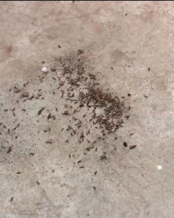 从当地居民提供的照片看,飞到家中和店铺的飞虫身体大概1-2厘米长,有的整体呈灰褐色,有的翅膀比较透明,当地居民不知道具体是什么品种。还有有居民说:“这种飞虫扑到身上,会有红点。”