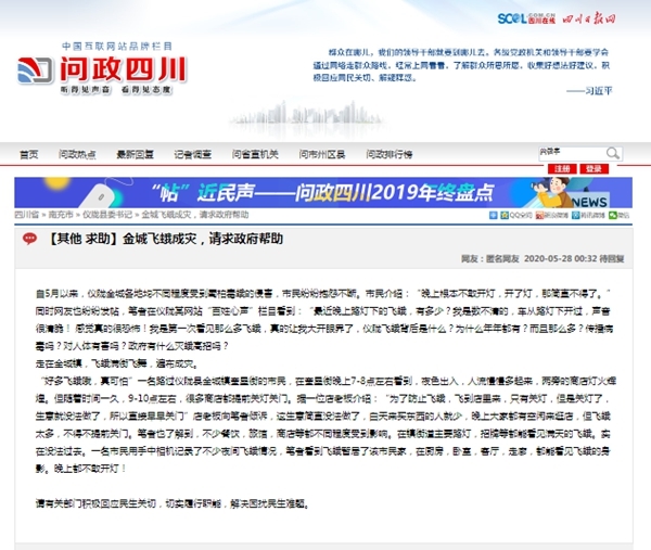 四川在线消息(记者 蒲南溪 寇敏芳)“晚上根本不敢开灯,开了灯,那简直不得了。”“为什么今年这么多飞虫?会不会携带病毒?”近日,南充市仪陇县金城镇居民文先生通过民情热线求助通道和四川在线“问政四川”平台反映,从今年5月下旬到6月初,一到夜间,该镇居民生产生活受到飞虫困扰,并且怀疑这是“蜀柏毒蛾”。【相关链接:金城飞蛾成灾,请求政府帮助】