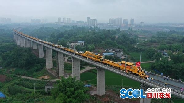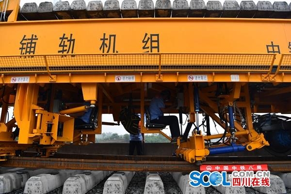 四川在线消息(记者 王眉灵/文 何海洋/摄影)6月12日,川南城际铁路开始铺轨,长604米的CCPG500A型长钢轨铺轨机组首次亮相川南,进行铁轨铺筑。现代化的铁路铺轨什么样?记者带你现场看。(相关报道:川南城际铁路开始铺轨,内自泸段计划明年建成通车)
