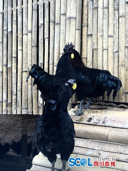 鸡圈用竹条搭建成吊脚楼的样貌,夏天,乌骨鸡住在楼下,通过上层结构遮挡烈日,达到降温的目的;冬天,乌骨鸡住进楼里,村民则用菌种发酵掉落下层的鸡屎为上层升温,又发挥了保温的作用。“这样的养殖培育方法还申请了发明专利。”彭俊松表示。
