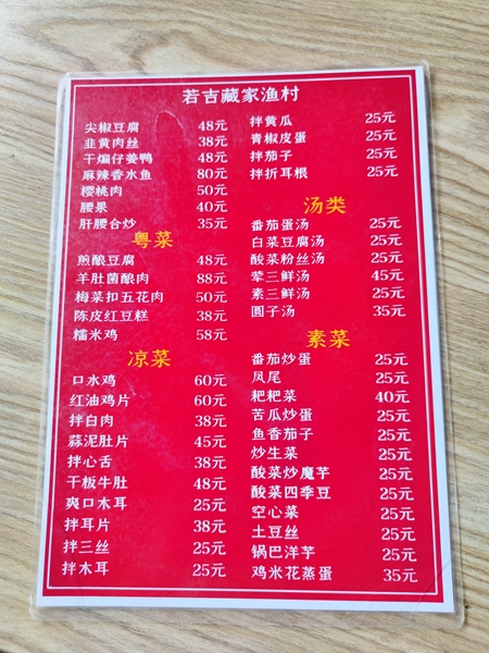 与甘孜其他饭店不同,姑咱镇若吉村若吉藏家鱼村的菜单上有5道到来自广东的地道粤菜。为啥在四川省甘孜州康定市的一处乡村饭店中有来自广东的地道粤菜?故事还要从前年说起。