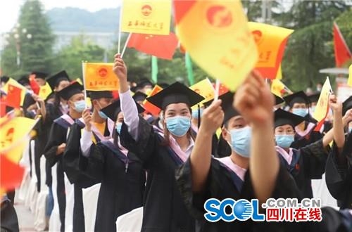 四川在线消息(记者 张庭铭)6月13日,在西华师范大学华凤校区朝阳广场,西华师范大学举行2020届毕业生毕业典礼。据悉,受到疫情影响,本次典礼采取线上线下相结合的方式进行现场直播。身在各地的毕业生们与现场的同学们心系一处,与母校共同走过大学时光的最后节点。