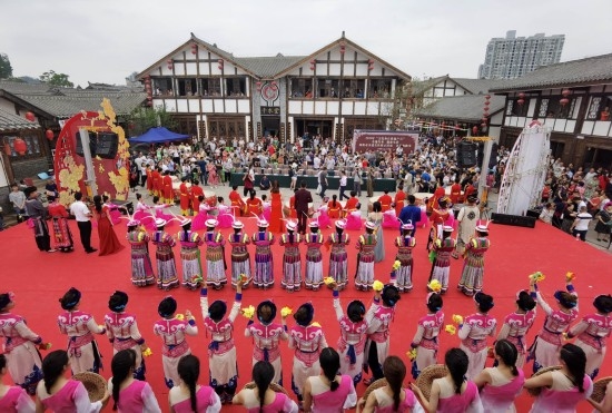 开幕式上,《羌山深情》、《白马情缘》、《花园龙舞》、《郪王出巡》等“非遗”表演,把传统说唱、歌舞、戏曲等原汁原味的民族风情真实地展现在观众面前。