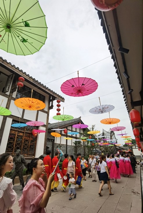 潼川豆豉、回族火烧馍、梓潼酥饼、富乐糖画等30余个非遗特色小吃让人垂涎欲滴,置身老街古巷,游客们仿若进入时光隧道——“踱千步尝尽绵阳‘非遗味道’,行万米领略潼川‘古城遗风’”。