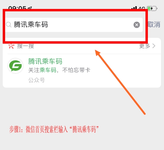 步骤一:在微信首页搜索栏输入“腾讯乘车码”