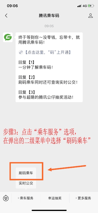 步骤三:点击“乘车服务选项”,选择“刷码乘车”