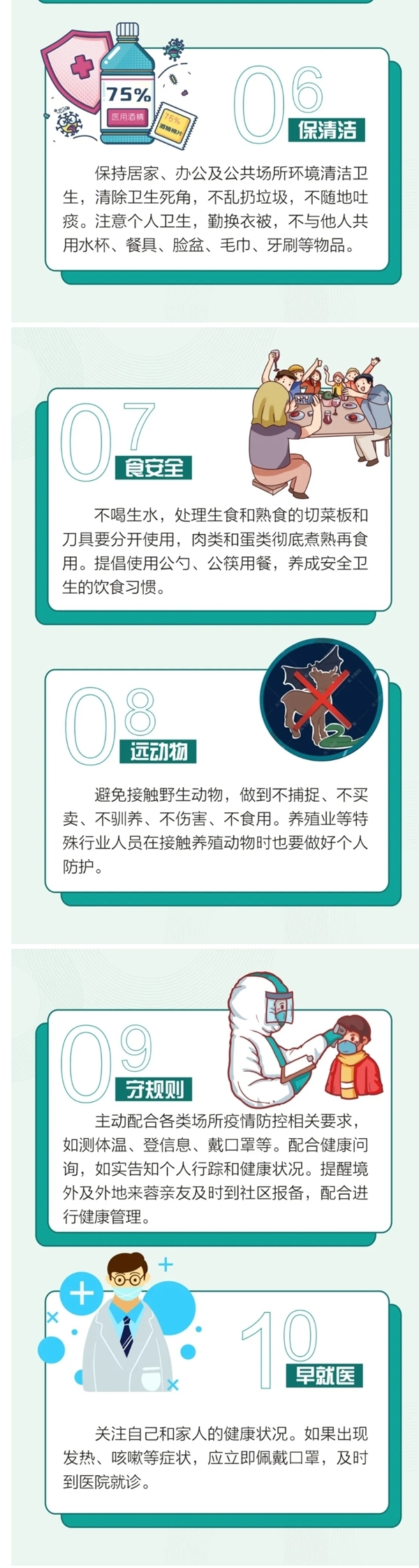 二、请时刻保持个人防护意识,科学戴口罩,勤洗手,长通风,保距离。积极响应爱国卫生运动各项举措,定期清扫保洁。