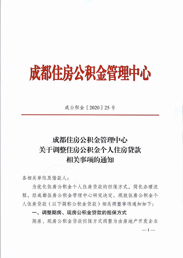 四川在线消息(记者 文强)6月15日,记者从成都住房公积金管理中心获悉,为优化住房公积金个人住房贷款的担保方式,简化办理流程,经成都住房公积金管理中心研究决定,现就住房公积金个人住房贷款(以下简称公积金贷款)相关事项做出调整。