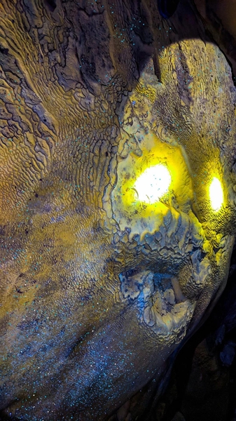 近日的文旅资源普查中,泸州市叙永县文化和旅游资源普查野外工作组在石庄村发现一处大型溶洞,溶洞不但规模庞大,还有钙华梯田、珍珠滩等奇观,其钙华面积之大、种类之丰富,堪称“天然钙华博物馆”,是溶洞景观中的上乘之作。其中,最奇特的要数荧光海滩,溶洞里看会发光的海滩,这种“破次元壁”的奇妙组合,想想就令人激动。