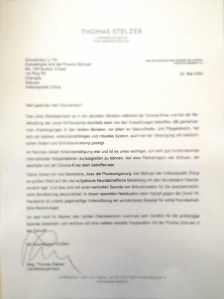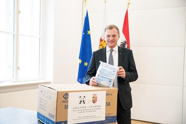奥地利上奥州州长斯特尔策出席捐赠物资接收仪式