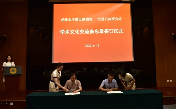 6月16日上午,金沙遗址博物馆与大足石刻研究院合作协议签约仪式在金沙遗址博物馆举办。双方约定,将在博物馆运营信息共建共享的基础上,开展文化遗产保护、学术科研交流、展览交流、文物保护、宣传推广、社会教育、公众服务、文创开发、智慧博物馆项目等多领域的密切合作,共同推动两地文化遗产保护进程。作为两馆签约后的第一个实质性成果,由成都金沙遗址博物馆与大足石刻研究院联合举办的《天下大足——大足石刻历史与艺术展》(暂定名),将于今年8月登陆金沙。