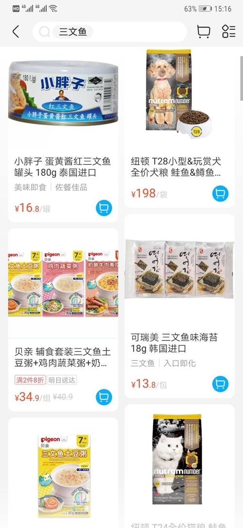 此外,记者在河马盒马APP上搜寻“三文鱼”,也已不见生鲜三文鱼销售,显示结果只有部分三文鱼加工食品。