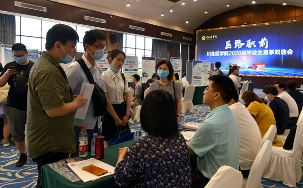 近日,川北医学院2020届毕业生举行了夏季双选会。由于疫情防控,此次双选会采取了线上与线下并行的方式。