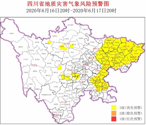 6月16日,省地质灾害指挥部办公室发布全省地质灾害气象风险预警。结合四川省气象台天气预报情况,6月16日20时~6月17日20时,全省18市州进入3级(黄色预警)范围。这是我省今年入汛以来最大范围的预警。
