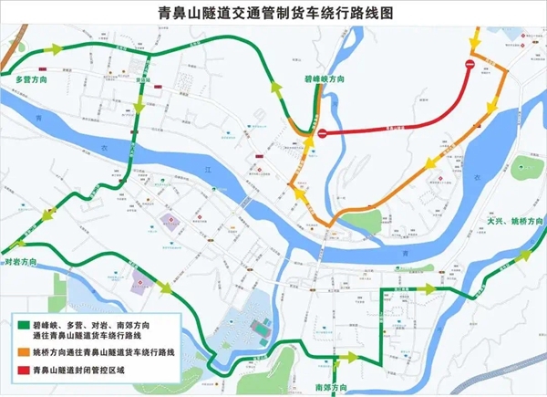 (一)从碧峰峡、多营方向通往青鼻山隧道的机动车,由北环西路一-西门北路--货运站-西门大桥--西门南路--城后路--张家山路--友谊路--.上坝路--羌江南路--南坝东街--南外环路一线通行。