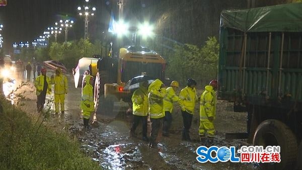 在救出被困车辆后,工作人员又立即对国道213线路面上的泥石流堆积体进行清理,确保道路畅通。