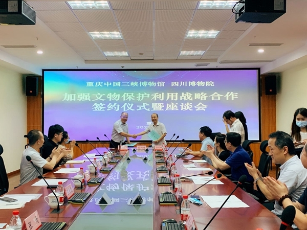 在重庆和四川的地缘关系上,川渝相近相亲,有着共同的生活习惯和文化传承。这为两馆携手发展,共同研究好、利用好、发展好文物资源,深入开展全方位合作,奠定了深厚的基础。特别是在成渝双城经济圈建设这一国家战略大背景下,两馆可以携手联合两地文博单位,深耕历史文化,唱好文物大戏,讲好中国故事,是责任也是担当。