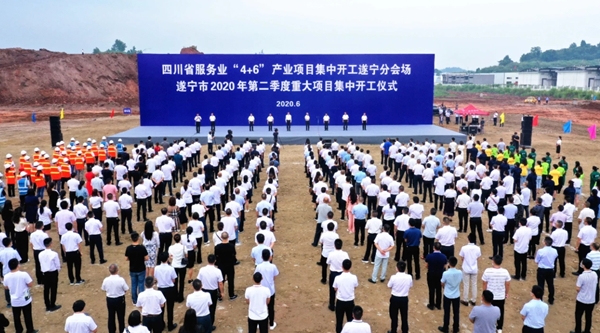 四川在线消息(记者 王若晔)6月19日,四川省服务业“4+6”产业项目集中开工遂宁分会场暨遂宁市2020年第二季度重大项目集中开工仪式在蓬溪产业园举行。 此次集中开工的项目共152个,涵盖基础设施建设、产业发展、民生及社会事业等多方面,总投资568亿元。其中:基础设施方面66个、总投资207亿元,产业发展方面56个、总投资203亿元,社会民生方面24个、总投资133亿元,其他方面(房地产)6个、总投资25亿元。 总体来看,今年遂宁第二季度集中开工的项目比去年同期增加9个、252亿元。其中:30亿元以上的项目4个、10亿元以上的项目12个、1亿元以上的项目81个。 四川潮汕产业园项目是这次集中开工的代表项目之一。该项目计划总投资100亿元,分3期建设,分为铜材加工、线缆线束、高分子材料三大板块。一期投资30亿元产业园项目,主要建设电解铜杆、无氧铜杆、线缆线束、高分子绝缘材料等为一体的线缆线束全产业链专业园区。园区建成后将成为西南最大线缆线束专业园区,首期建成后,年产值将达100亿元以上。