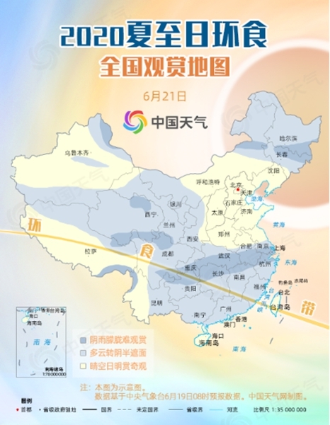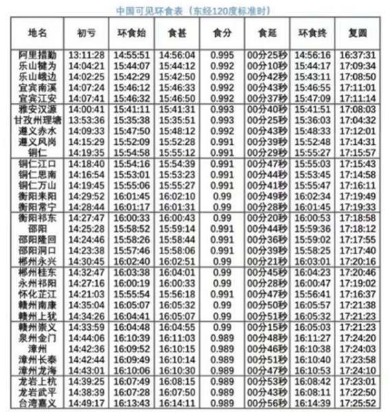 特别令人期待的是,明天这次日食的环食带穿过我国西藏、四川、贵州、湖南、江西、福建、台湾等地,我国全境都处于见食区域,在环食带外的地区可以看到日偏食。
