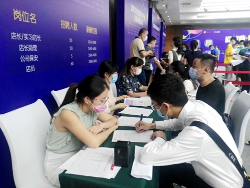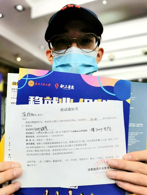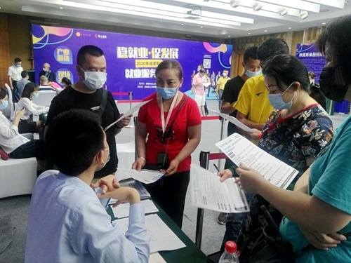 四川在线消息(记者 郝勇)6月20日,成都市总工会在成都市劳动人民文化宫举办首场“稳就业·促发展”2020年成都职工就业服务行动线下招聘会。招聘会现场精选成都交投、红旗连锁、华帝等10家本地知名企业提供400余人招聘需求,工资基本在3000元至1万元之间,503位求职者按时段分批次到场与企业一对一面试沟通。截至活动结束,有208位求职者当场与企业达成用工意向。