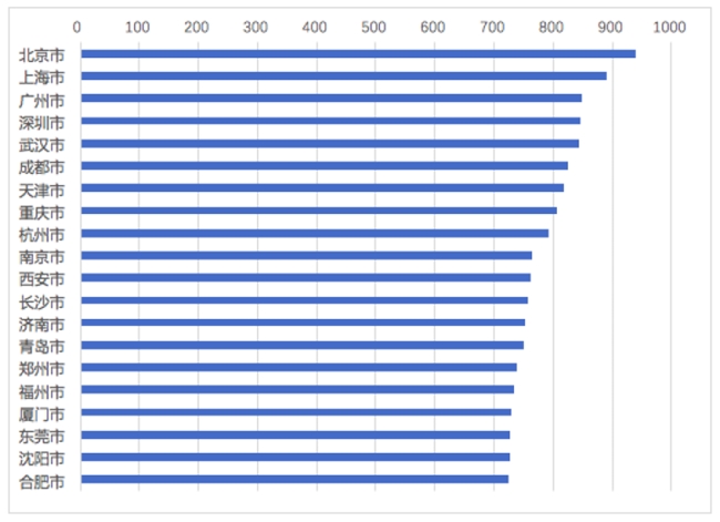 城市旅游美誉度指数主要通过问卷调查、网络舆情数据内容分析计算,网络舆情数据主要来源于微博、微信、网页、论坛、客户端、报刊等。综合对各项数据的评价分析,城市旅游美誉度指数排名前五的城市依次为北京、上海、广州、深圳、武汉,成都位列第六。