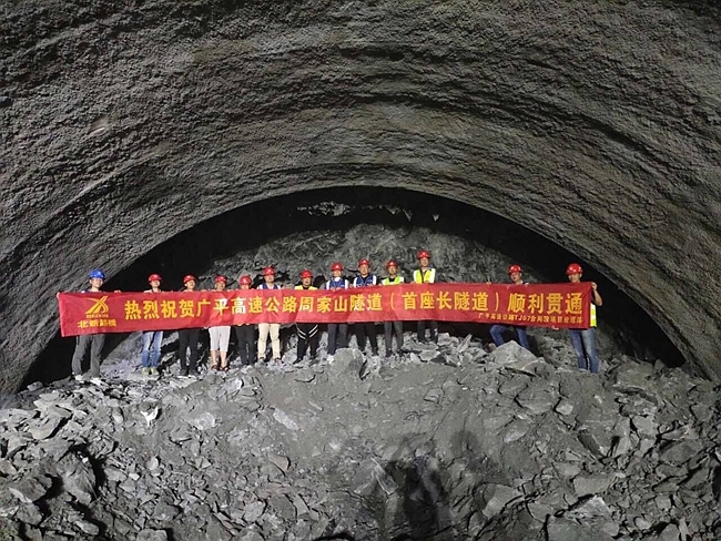 四川在线消息(马轶锋 记者 燕巧)6月21日,记者从新疆北新路桥集团广平高速项目部获悉,广平高速周家山隧道于6月18日顺利贯通,是广平高速公路项目首条双向贯通的长隧道。