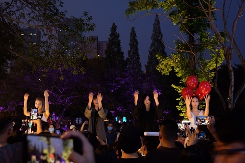夜晚降临,十名《成都偷心》青年演员和特邀的两支舞蹈团体“麻辣摇摆”和“巧舞艺术”突然出现,以舞蹈艺术、即兴互动、浸没式表演为契机,给在场所有人带来一场兼具诗意和治愈的浸没式演出。