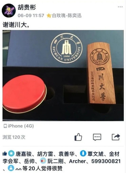 今年四川大学材料科学与工程学院的毕业生收到了一份不一样的毕业礼物。为了弥补“特殊毕业季”没有系列毕业活动的遗憾,该学院组织毕业班同学共同设计了“毕业印章”,并为该学院375名2020届本硕博毕业生一人定制了一枚。