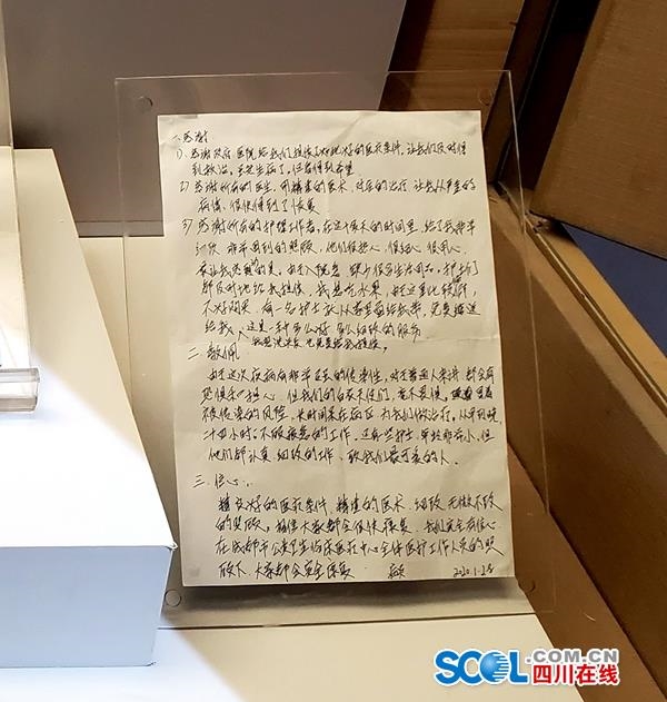 四川在线消息(记者 钟振宇 李寰)6月22日,得知自己手写的《感谢信》被陈列在四川博物院举行的“战疫——四川抗击新冠肺炎疫情专题展”上,曾经的患者杨先生感慨万千,“历史需要铭记,感恩需要常怀,信念需要常在。”