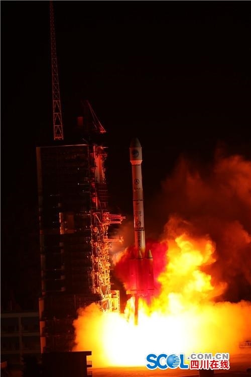 2019年4月20日22时41分,我国在西昌卫星发射中心用长征三号乙运载火箭,成功发射第44颗北斗导航卫星。这是北斗三号系统的首颗倾斜地球同步轨道卫星。图片由西昌卫星发射中心提供