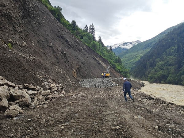 灾情发生后,壤塘县委县政府和阿坝州公路管理局第一时间从周边调集大型机具和抢险队员投入抢通工作,并从山边抢通了一条长300米,有效路面宽5米的临时便道。目前,该便道仅小型车辆单边通行,进出壤塘的大型车辆仍需经过成都—鹧鸪山隧道—刷经寺—龙日坝—阿坝—壤塘—黑桥—炉霍或者壤塘—黑桥—炉霍—道孚—康定—成都两条线路绕行。