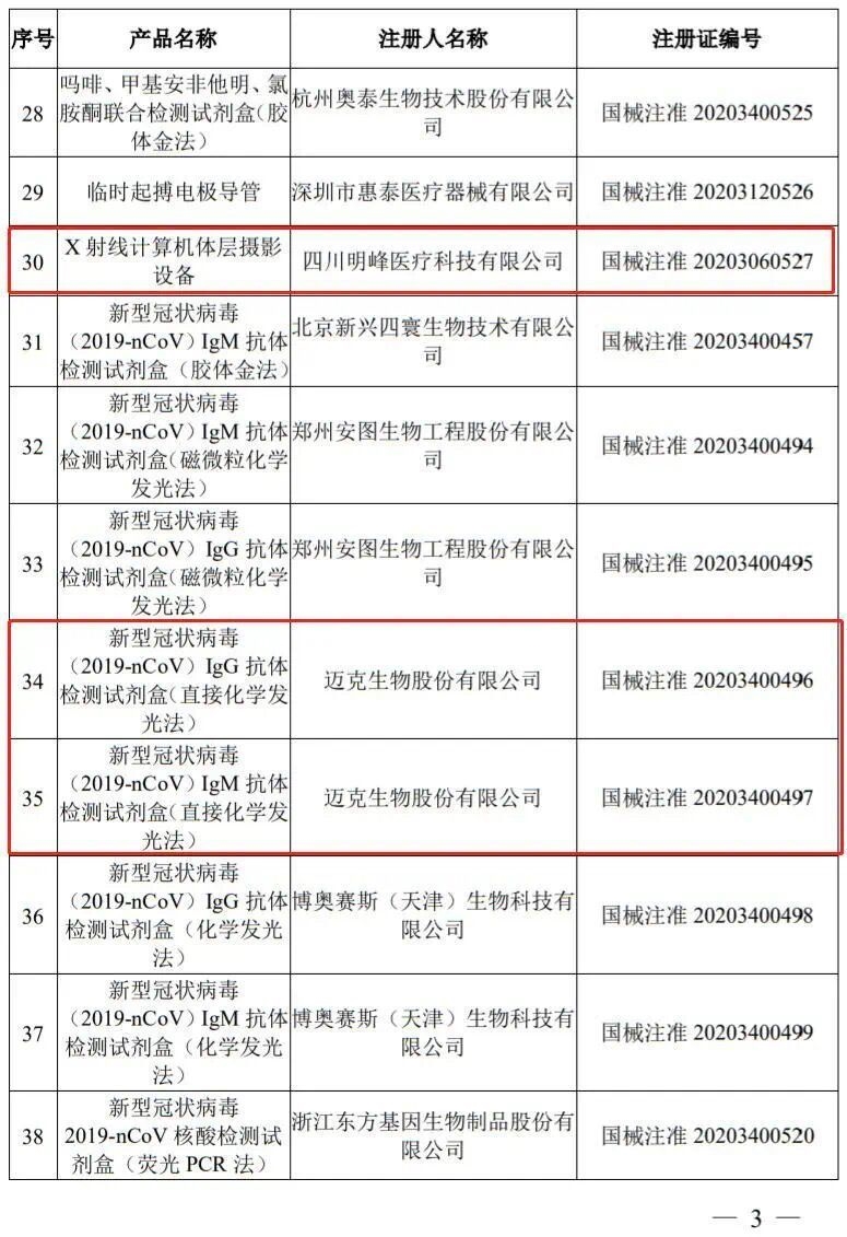 6月23日,记者从省药监局获悉,今年5月国家药品监督管理局共批准注册医疗器械产品135个,其中四川占据6个,包括迈克生物股份有限公司申请注册的新型冠状病毒抗体检测试剂盒等产品。