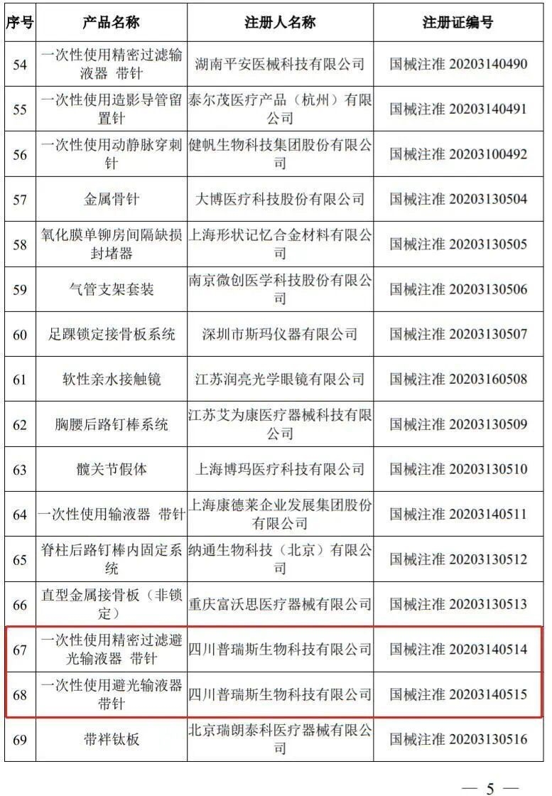 “2020年5月批准注册医疗器械产品目录”显示,本次批准注册的医疗器械产品中,境内第三类医疗器械产品79个,进口第三类医疗器械产品21个,进口第二类医疗器械产品32个,港澳台医疗器械产品3个,获批产品包括“呼吸机”、“等离子手术设备”、“抗双链DNA抗体校准品”等,涉及多家国内外企业。