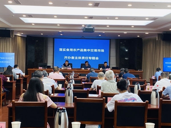 “我们承诺,建立食品进货查检记录制度,实行质量安全结果公示制度,所经营的农产品符合食用农产品质量安全标准要求……”6月24日,四川省市场监管局召开落实食用农产品集中交易市场开办者主体责任专题会,通报近期对全省各地农贸市场开展集中检查和风险排查结果,进一步压实各方责任。农贸市场开办者代表还现场签署了食用农产品集中交易市场食品安全承诺书。