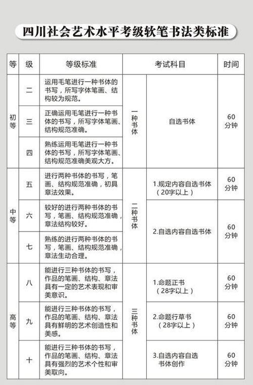 心心念念的2020年四川省社会艺术水平(美术、书法)考级来了!6月24日,记者从省文化馆获悉,2020年全省社会艺术水平(美术、书法)考级报名将于7月1日上午9:00正式开启,凡爱好艺术,并具有一定美术、书法基础的人均可报名参加相应科目考级,且无年龄限制。