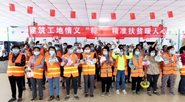 包粽子活动结束后,项目党群一行将充满浓浓情意的粽子、鸡蛋、洗脸巾、香皂、牙膏等慰问品送到贫困农民工手中,询问他们在项目的工作、生活情况,并感谢他们为项目建设付出的辛勤劳动。