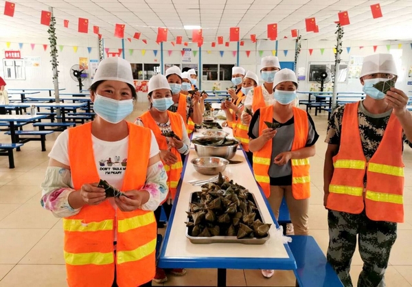 贫困农民工代表李德才乐呵呵地说:“今年工期紧,端午节回不了家,我自己也想多挣点钱早点脱贫。没想到项目组织我们包粽子,这也让我们有了回家的感觉。”