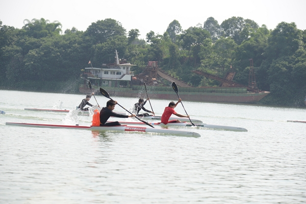 四川在线消息(王林 记者 刘川 何浩源)6月25日,端午节,广安的气温上升到35度以上,嘉陵江畔武胜县沿口码头,广安市赛艇、皮划艇运动队的“00后”少年们,手握长浆与江水“角力”,赛艇像离弦的箭一样,划破水面,逆流而上。