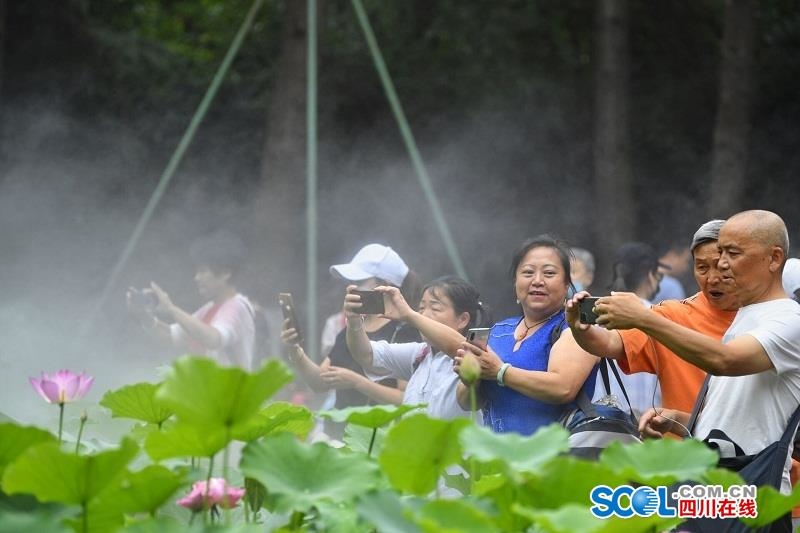 四川在线消息(记者 杨树 摄影报道) 6月27日,“端午”小长假第三天,清风送爽,人民公园荷香飘溢,吸引了众多市民游客在此赏荷。