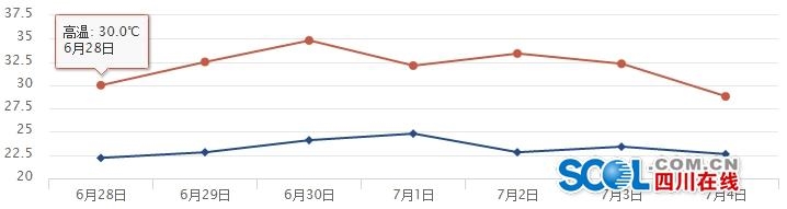 比如,成都气象台已经预计,6月30日白天,成都的最高气温将升至35℃。