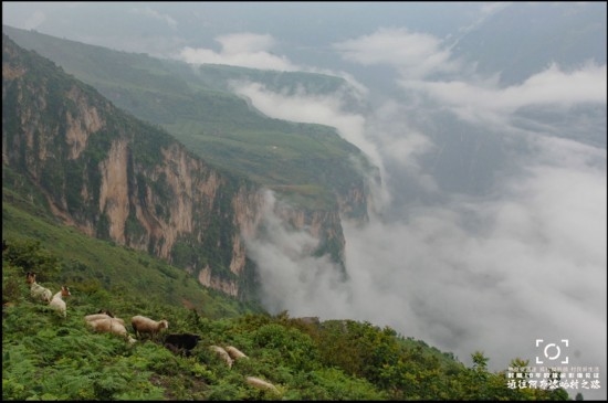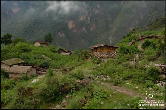 ● 过去进出阿布洛哈村的通道就是一条垂直落差近2000米,最强壮的汉子徒步上坡最快也要4小时的悬崖羊肠路。拍摄于2007年7月12日