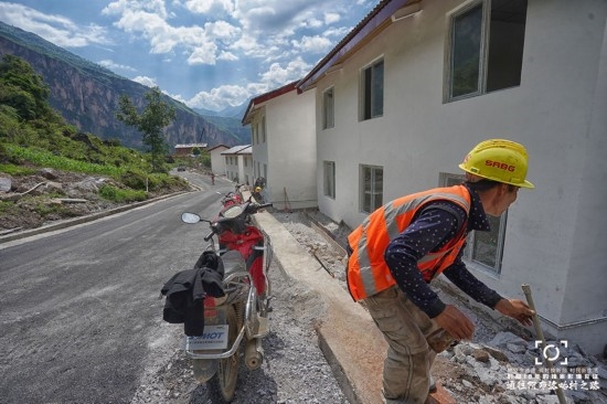 ● 在工地上干完活,村民且沙次干准备骑摩托车回家。 拍摄于2020年6月26日