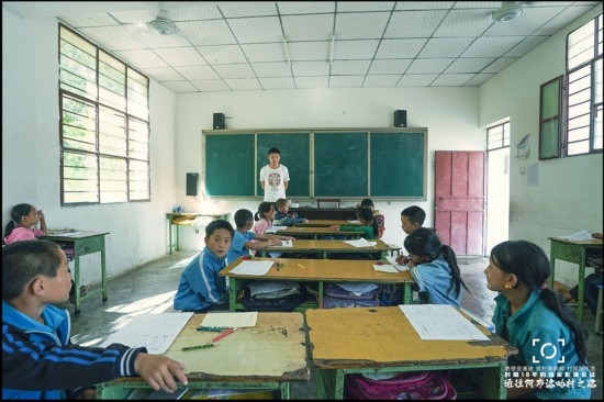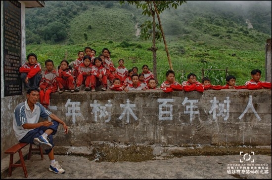 ● 阿布洛哈小学代课老师拖觉色子和孩子们在一起。拍摄于2007年7月13日