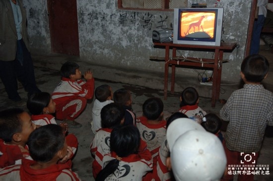 ● 没有电视信号的阿布洛哈村,孩子们观看动画片光碟片。拍摄于2007年7月12日